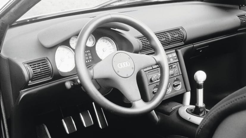 O Audi quattro Spyder de 1991 oferecia um conceito de carroceria tipo targa, com um painel de teto de vidro e retrátil manualmente que podia ser colocado sobre a tampa do motor. Em relação ao habitáculo, o protótipo oferecia um design muito retangular, com um console central inspirado no do Audi Coupe, um volante de três raios minimalista, um quadro de instrumentos com esferas de fundo branco, uma alavanca de câmbios com um desenho muito similar ao do primeiro Audi TT e um par de bancos esportivos acabados em tecido. |
